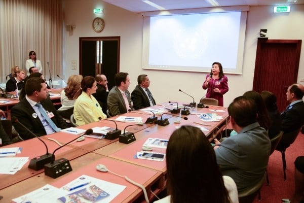 En la sede de las Naciones Unidas, la Dra. María Luisa Piraquive, fundadora y presidenta de la Fundación Internacional María Luisa de Moreno, expuso el modelo de inclusión productiva para personas con discapacidad Descubrir la capacidad, una oportunidad en la conferencia titulada Capacidades para el desarrollo de las personas con discapacidad en Ginebra, Suiza.