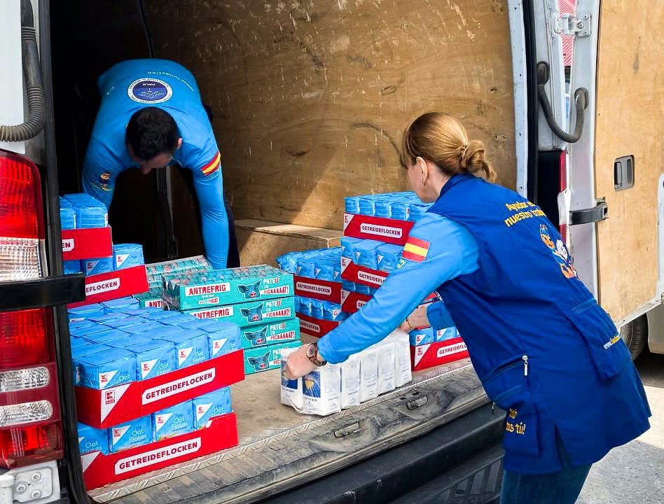 Desde allí se prepararon también ayudas alimentarias con productos no perecederos y primera necesidad que incluyen aceite, arroz, pasta, colacao, café, agua especial para los bebés, potitos o compotas, cereales, galletas, leche en polvo especial sin lactosa, leche en polvo para niños prematuros, entre otros.